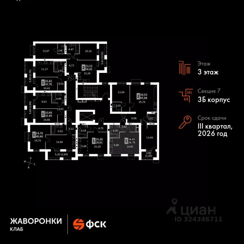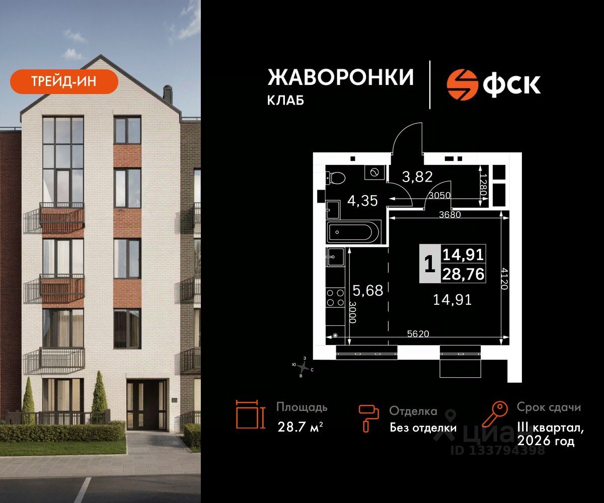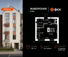 Продаётся студия номер 149 общей площадью 28.76 кв.м на 3-м этаже 4 этажного дома. Без отделки.
