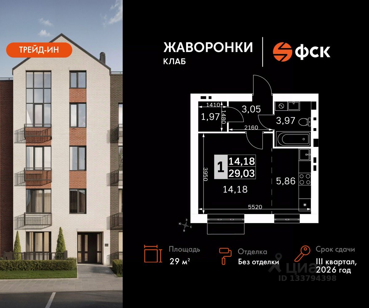 Продаётся студия номер 83 общей площадью 29.03 кв.м на 2-м этаже 4 этажного дома. Без отделки.