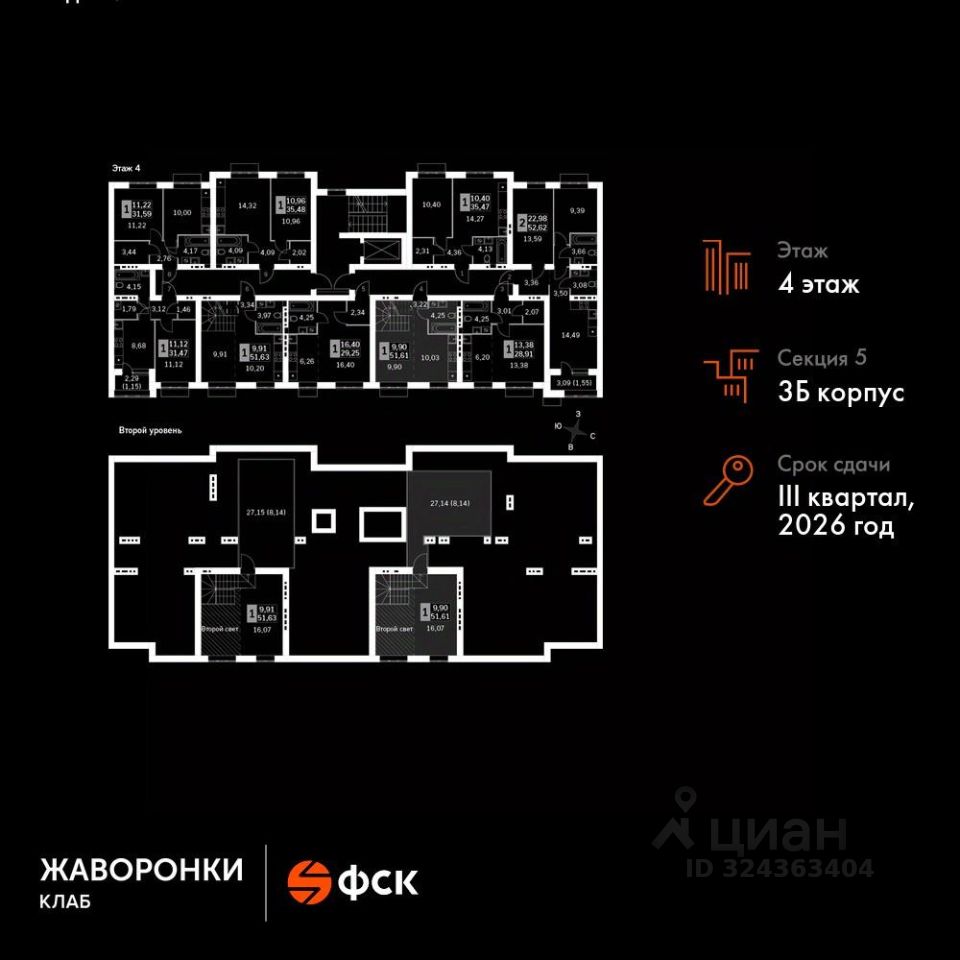Продаётся 2-к квартира номер 99 общей площадью 51.61 кв.м на 4-м этаже 4 этажного дома. Без отделки.