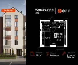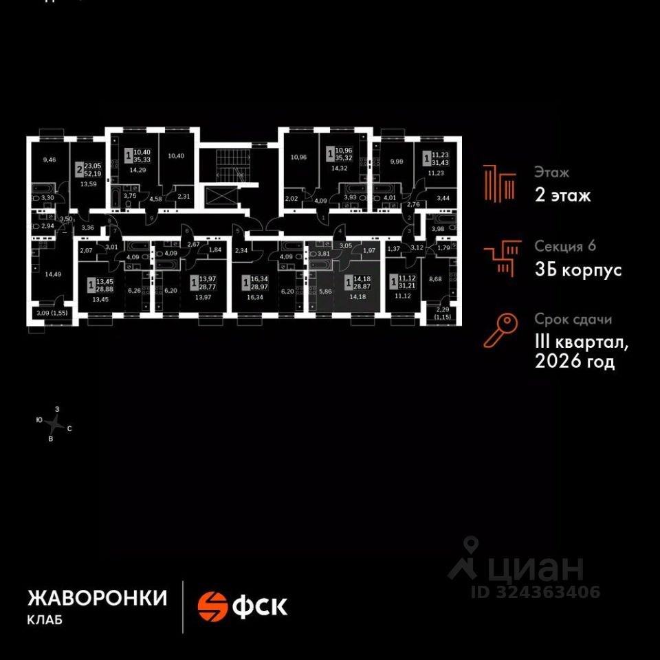 Продаётся студия номер 113 общей площадью 28.87 кв.м на 2-м этаже 4 этажного дома. Без отделки.