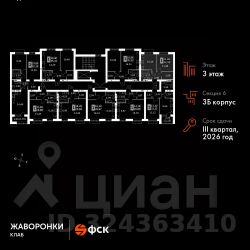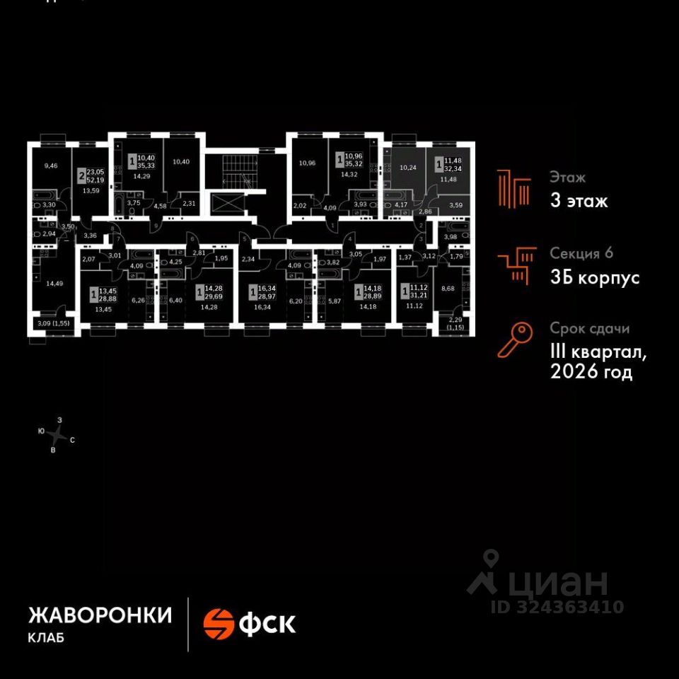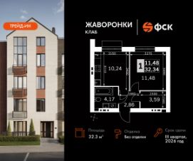 Продаётся 1-к квартира номер 120 общей площадью 32.34 кв.м на 3-м этаже 4 этажного дома. Без отделки.