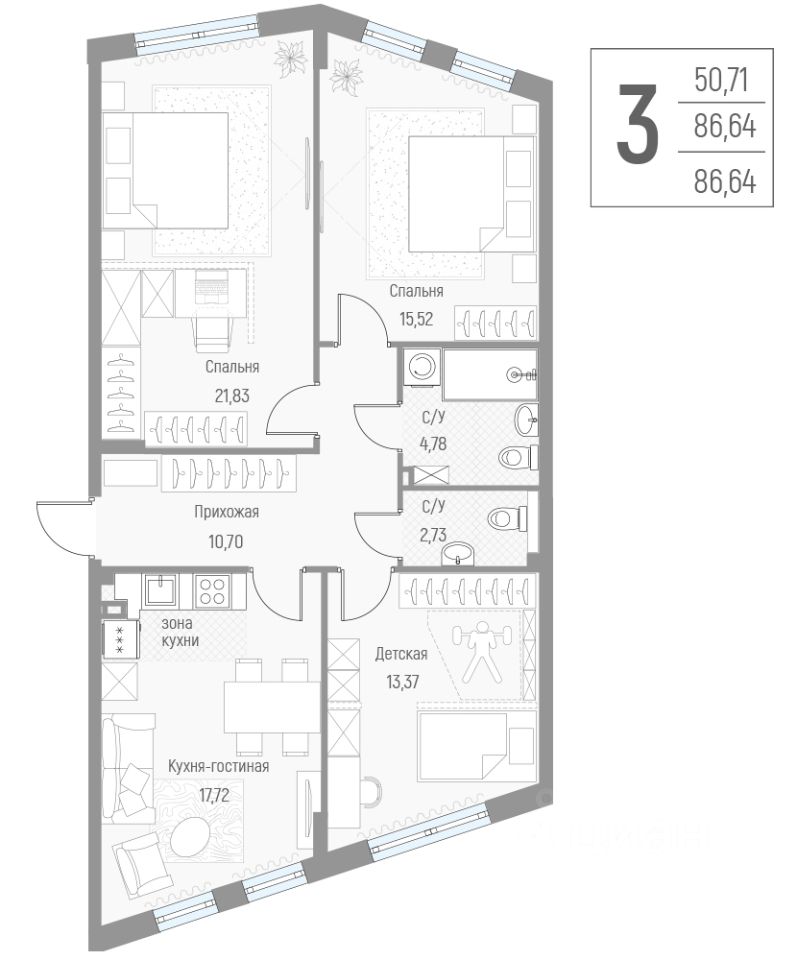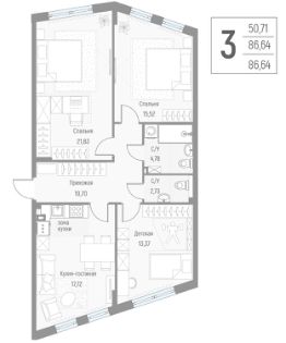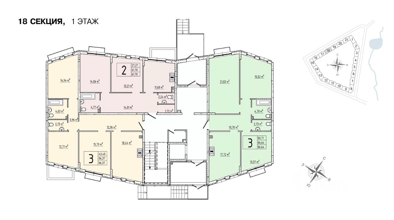 Прямая продажа от застройщика! Продаётся 3-комнатная квартира общей площадью 86,4 кв.м на 1-м этаже 4 этажного дома. Дом сдан.