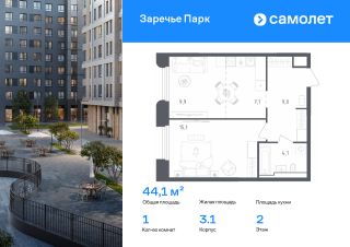 Строим кварталы для жизни с заботой о будущем. Предлагается 1-комнатная квартира бизнес-класса 44,1 кв.м в корпусе 3.1 на 2 этаже, в ЖК "Заречье Парк"