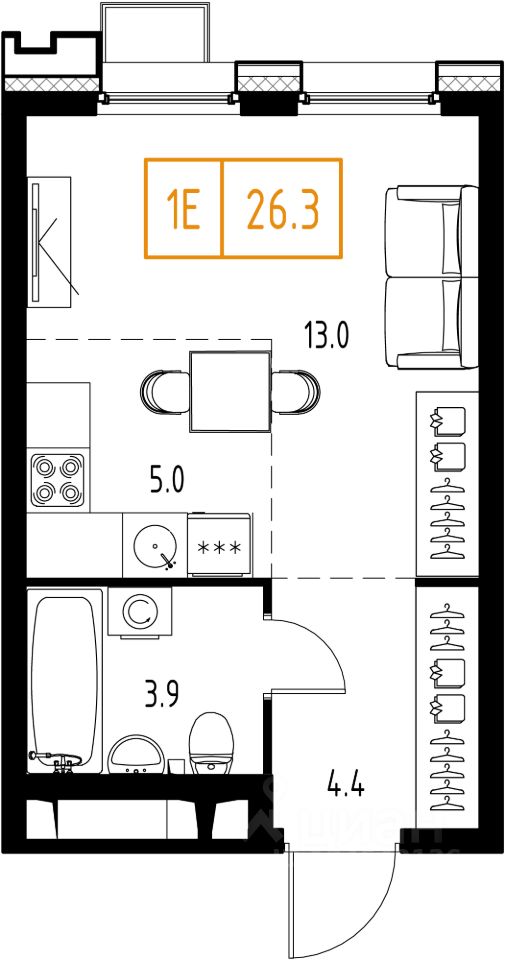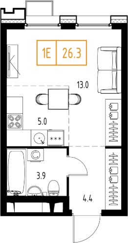 Квартира в корпусе 4 | 26,3 м² | 3 этаж из 9 | Дом сдан