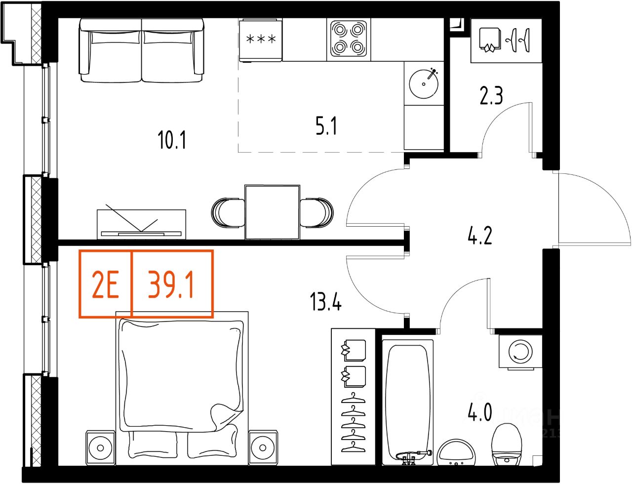 Квартира в корпусе 6 | 39,1 м² | 8 этаж из 9 | Дом сдан