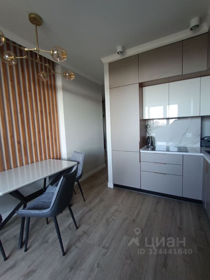 Просторная кухня площадью 14,4 кв. м. с выходом на застекленный балкон(более 6 метров) с прекрасным видом, расположена на 13 этаже монолитного дома.