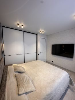 Спальни: 3 спальни, в каждой — кондиционер, телевизоры (Grundig, Samsung), кровати Blue Sleep, встроенные шкафы.