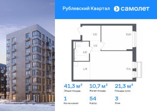 Строим кварталы для жизни с заботой о будущем. Предлагается 1-комнатная квартира комфорт-класса 41,27 кв.м в корпусе 54 на 3 этаже, в ЖК "Рублевский Квартал"