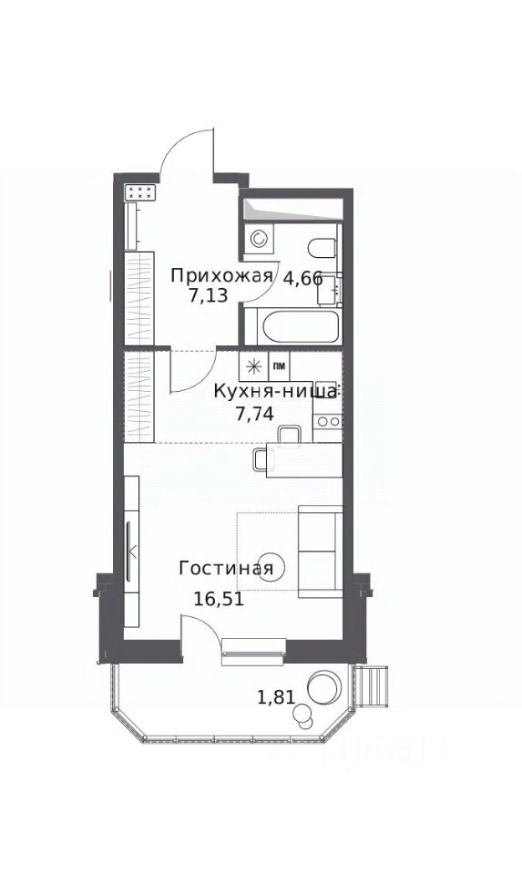 Арт. 126978433 Продается просторная студия в ЖК Одинбург.