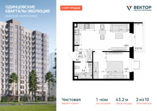 Продается 1-комн. кв-ра площадью 43,2 кв.м на 2 этаже 10 этажного дома в ЖК "Одинцовские кварталы Эволюция" от Группа компаний Вектор. Жилой комплекс "Одинцовские кварталы Эволюция" расположен в окружении живописного леса и исторических стародачных поселков, создавая атмосферу загородного уюта и культурной ценности. Этот район всегда считался престижным: здесь жили ученые, писатели и деятели искусства, что придает комплексу особый характер.