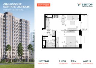 Продается 1-комн. кв-ра площадью 40 кв.м на 4 этаже 14 этажного дома в ЖК "Одинцовские кварталы Эволюция" от Группа компаний Вектор. Жилой комплекс "Одинцовские кварталы Эволюция" расположен в окружении живописного леса и исторических стародачных поселков, создавая атмосферу загородного уюта и культурной ценности. Этот район всегда считался престижным: здесь жили ученые, писатели и деятели искусства, что придает комплексу особый характер.