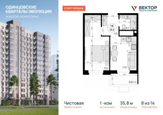 Продается 1-комн. кв-ра площадью 35,8 кв.м на 8 этаже 14 этажного дома в ЖК "Одинцовские кварталы Эволюция" от Группа компаний Вектор. Жилой комплекс "Одинцовские кварталы Эволюция" расположен в окружении живописного леса и исторических стародачных поселков, создавая атмосферу загородного уюта и культурной ценности. Этот район всегда считался престижным: здесь жили ученые, писатели и деятели искусства, что придает комплексу особый характер.