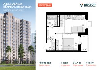 Продается 1-комн. кв-ра площадью 36,4 кв.м на 7 этаже 10 этажного дома в ЖК "Одинцовские кварталы Эволюция" от Группа компаний Вектор. Жилой комплекс "Одинцовские кварталы Эволюция" расположен в окружении живописного леса и исторических стародачных поселков, создавая атмосферу загородного уюта и культурной ценности. Этот район всегда считался престижным: здесь жили ученые, писатели и деятели искусства, что придает комплексу особый характер.