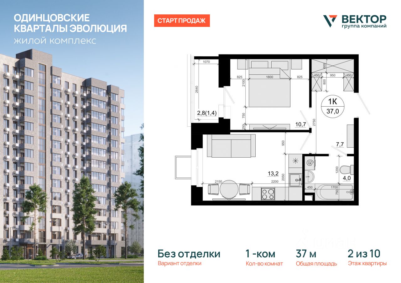 10,7 м²