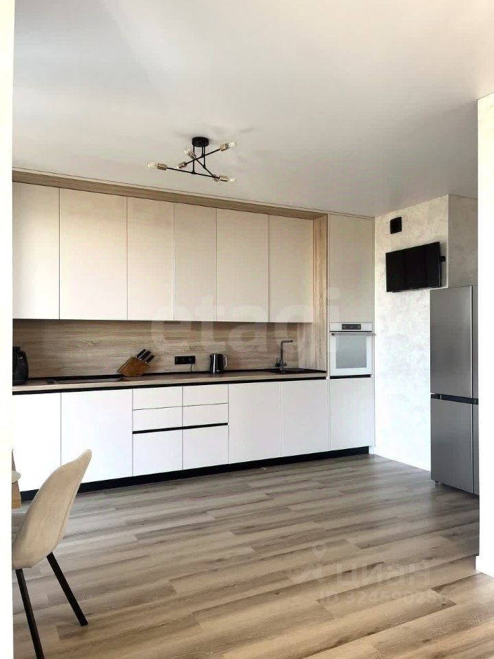 В квартире сделан новый ремонт по дизайн-проекту, новая импортная мебель, дорогие материалы в отделке (в том числе натуральное дерево в ванной), дорогая импортная бытовая техника.