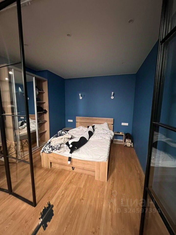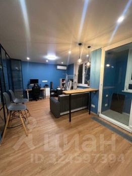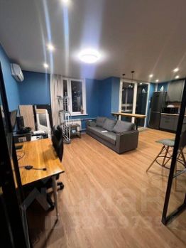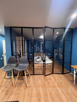 Не смотря на то что это студия, зона спальни отделена стеклянной перегородкой. Просторная лоджия, в которой теплый пол. Теплый пол также в сан.узле.