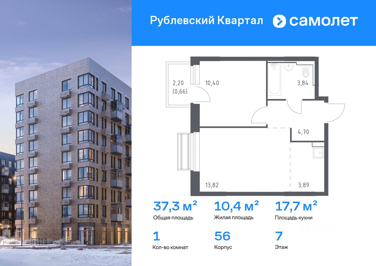 Строим кварталы для жизни с заботой о будущем. Предлагается 1-комнатная квартира комфорт-класса 37,31 кв.м в корпусе 56 на 7 этаже, в ЖК "Рублевский Квартал"