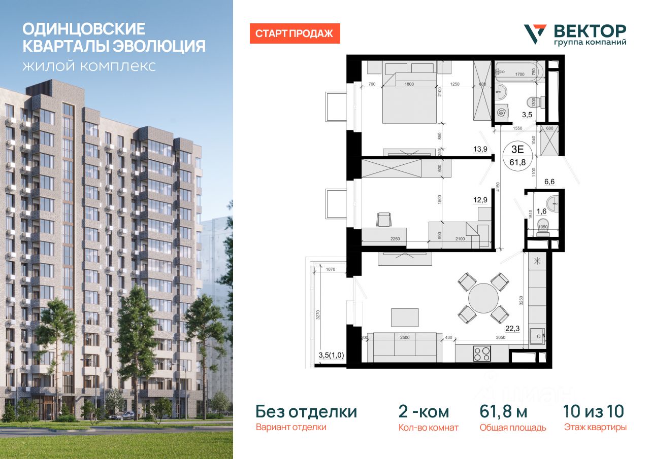 Продается 2-комн. кв-ра площадью 61,8 кв.м на 10 этаже 10 этажного дома в ЖК "Одинцовские кварталы Эволюция" от Группа компаний Вектор. Жилой комплекс "Одинцовские кварталы Эволюция" расположен в окружении живописного леса и исторических стародачных поселков, создавая атмосферу загородного уюта и культурной ценности. Этот район всегда считался престижным: здесь жили ученые, писатели и деятели искусства, что придает комплексу особый характер.