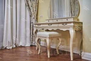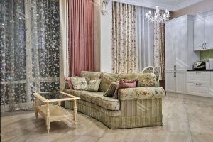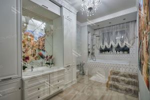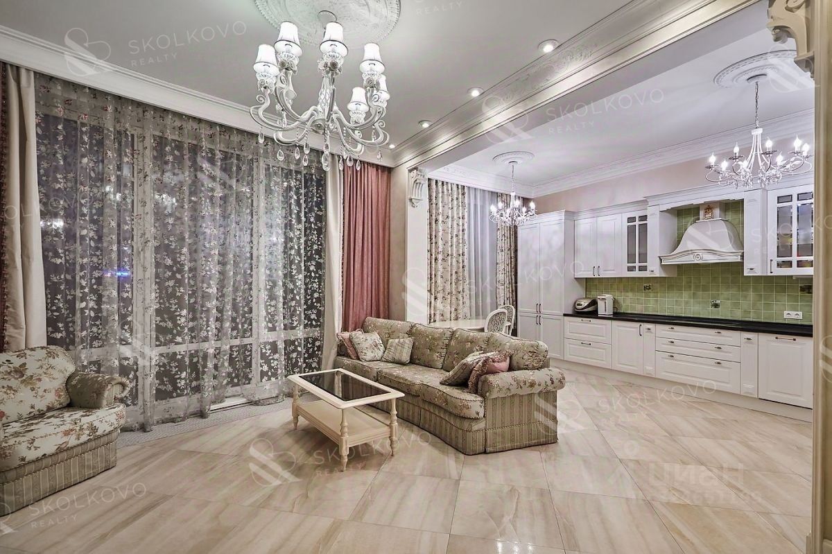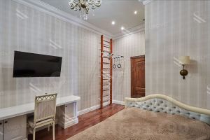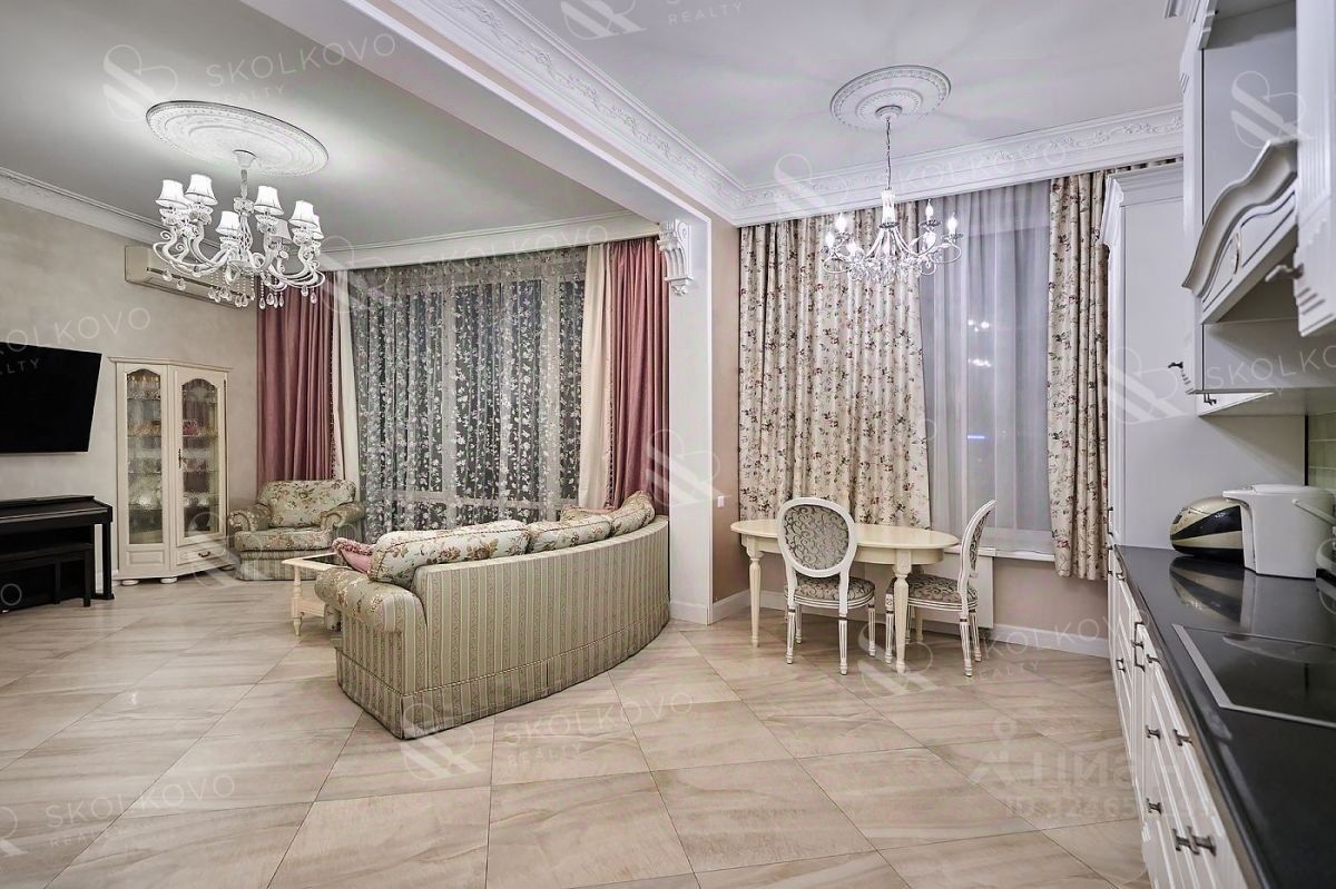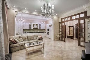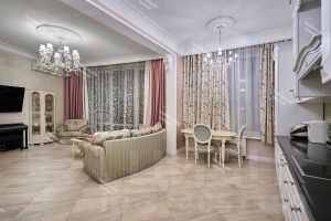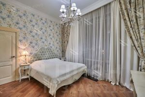 Квартира оформлена в классическом стиле с использованием высококачественных материалов, что подчеркивает изысканность и элегантность интерьера.