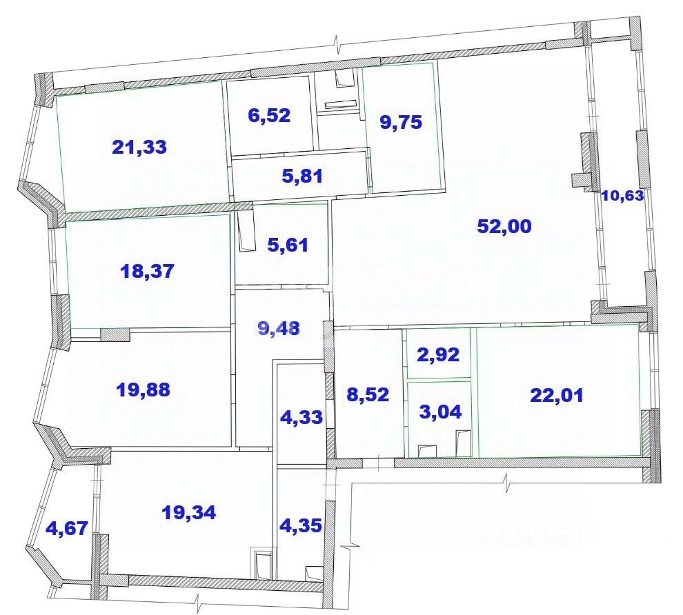 Удобная и просторная планировка. Спальные зоны отделены от гостиной приват-коридорами