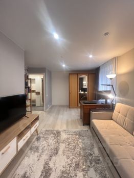 В квартире выполнен евроремонт, который придаёт жилью современный вид. Пол - стяжка, напольное покрытие коридор - кварц винил, кухня, комната - ламинат, санузел плитка, потолки натяжные. Теплы пол коридор, ванная комната.Обои антивандальные под покраску.