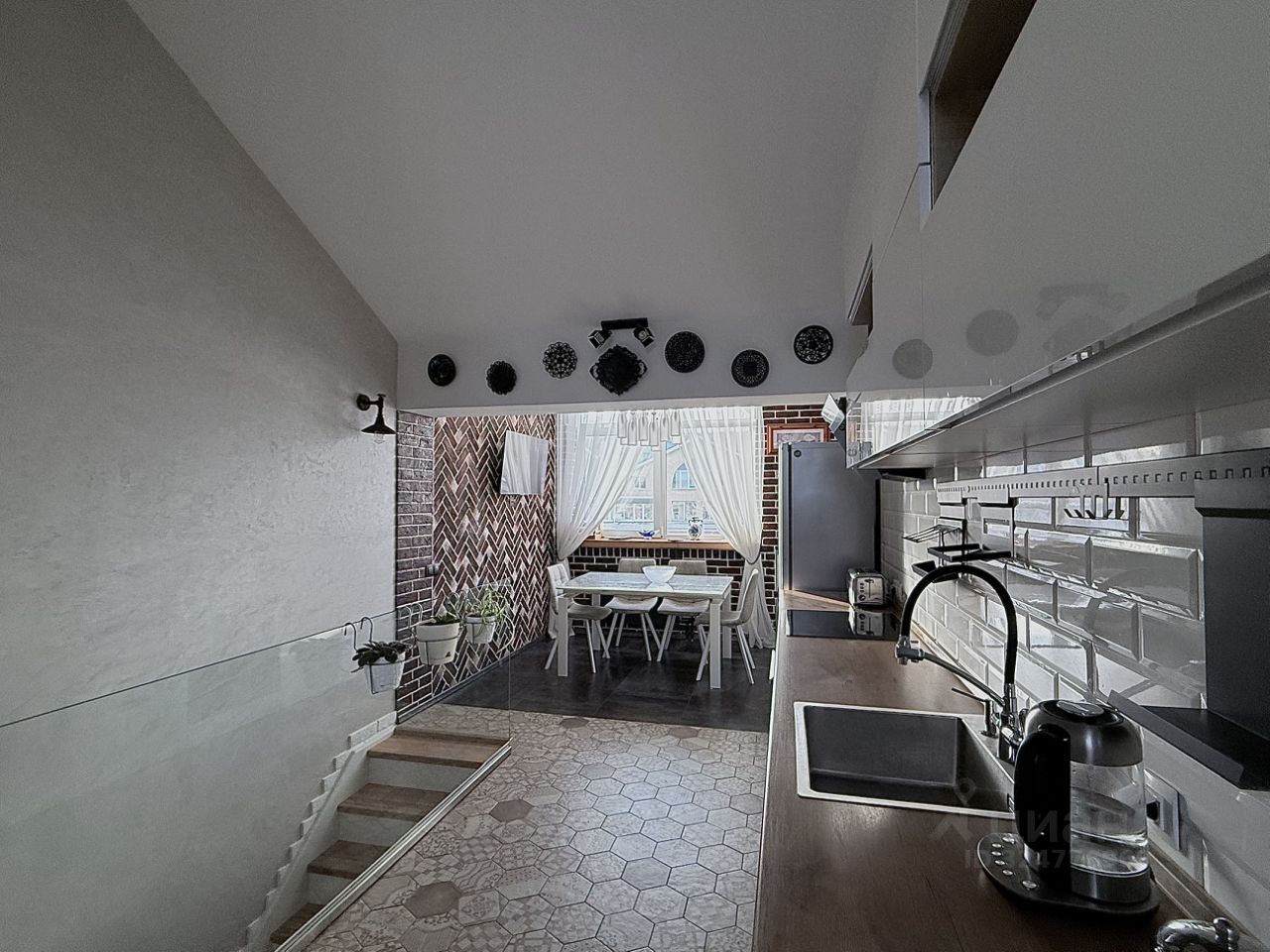 Tpи просторные спальни, большая гостиная и кухня, просторный коридор, два санузла, два балкона (застекленные), две кладовки (под лестницей и отдельная кладовая), высота потолков от 2,8 до 5 метров. Есть места хранения в подъезде (в тамбуре) на двух уровнях (велосипеды, коляски, бытовые инструменты и т.д.).