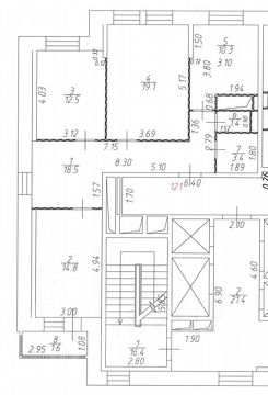 Площадь квартиры 81,6 кв.м., кухня 10,3 кв.м., комнаты 19,1 кв.м.,14,8 и 12,5 кв.м., прихожая с окном 18,5 кв.м. Квартира свободной планировки, можно распланировать по своему желанию. Окна выходят во двор.