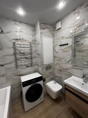 Площадь квартиры 41,2 кв.м. включает в себя огромную прихожую 7,8 кв.м., кухню 10,7 кв.м., спальню 16,6 кв.м., совмещенный санузел 3,9 кв.м., лоджию 2,2 кв.м. При отделке квартиры использовались качественные материалы, теплые полы в прихожей и санузле, установлен кондиционер и стиральная машина.