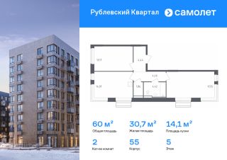 Строим кварталы для жизни с заботой о будущем. Предлагается 2-комнатная квартира комфорт-класса 59,97 кв.м в корпусе 55 на 5 этаже, в ЖК "Рублевский Квартал"