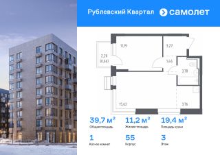 Строим кварталы для жизни с заботой о будущем. Предлагается 1-комнатная квартира комфорт-класса 39,74 кв.м в корпусе 55 на 3 этаже, в ЖК "Рублевский Квартал"