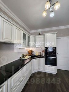 Эта трёхкомнатная квартира общей площадью 108 кв. м расположена на 21 этаже 24-этажного монолитной высотки 2014 года постройки. Жилая площадь составляет 56 кв. м, кухня — 15 кв. м. Высота потолков — 3 метра, что придаёт пространству дополнительную лёгкость и простор. Комнаты изолированы, окна выходят на улицу и во двор.