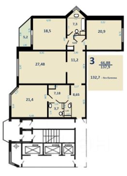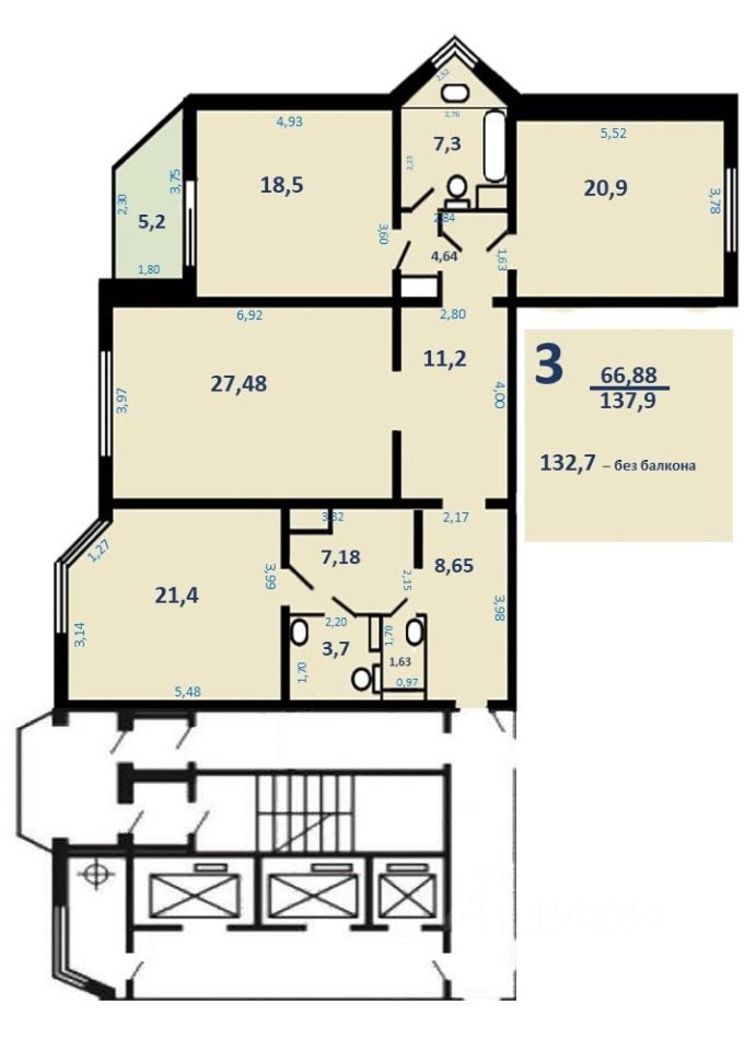 Продаётся просторная 3-х комнатная квартира, площадью 137 м², в лучшем и самом востребованном микрорайоне г.Одинцово 5А, в 6 км от МКАД. 13-й этаж 25-этажного дома (дом переменной этажности).