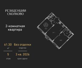Продается двухкомнатная квартира в девятиэтажном монолитном доме жилого комплекса "Резиденции Сколково".