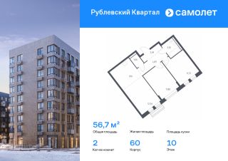 Строим кварталы для жизни с заботой о будущем. Предлагается 2-комнатная квартира комфорт-класса 56,7 кв.м в корпусе 60 на 10 этаже, в ЖК "Рублевский Квартал"