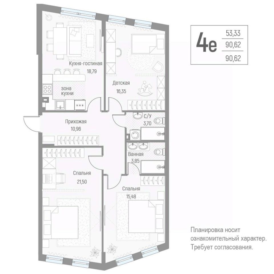 Прямая продажа от застройщика! Продаётся евро 4-комнатная квартира общей площадью 90,7 кв.м на 1-м этаже 4 этажного дома. Дом сдан.