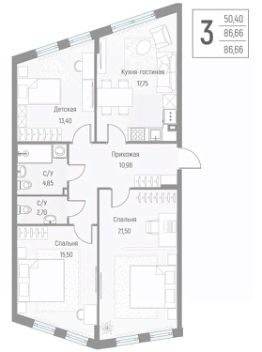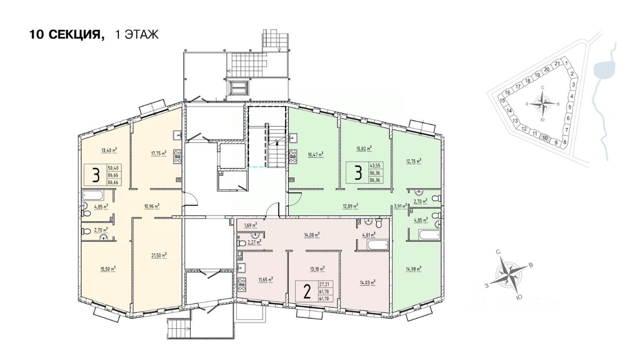 Прямая продажа от застройщика! Продаётся 3-комнатная квартира общей площадью 86,8 кв.м на 1-м этаже 4 этажного дома. Дом сдан.