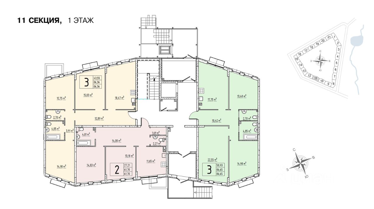 Прямая продажа от застройщика! Продаётся 3-комнатная квартира общей площадью 86,2 кв.м на 1-м этаже 4 этажного дома. Дом сдан.