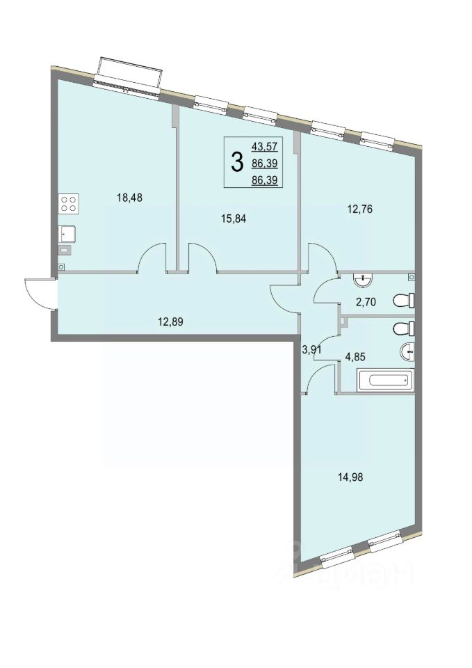Общая площадь86,4 м²
