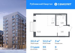 Строим кварталы для жизни с заботой о будущем. Предлагается квартира студия комфорт-класса 22,35 кв.м в корпусе 55 на 6 этаже, в ЖК "Рублевский Квартал"