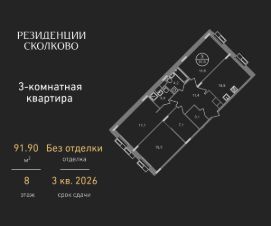 Продается трехкомнатная квартира в девятиэтажном монолитном доме жилого комплекса "Резиденции Сколково".