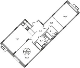 Общая площадь квартиры - 67,6 кв. м, этаж 3 из 9.