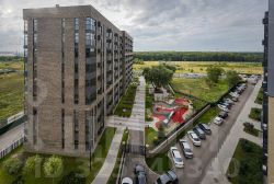 Авторская концепция архитектуры, входные группы на уровне земли. Для удобства жителей на первых этажах предусмотрены помещения для колясок и на -1 этажах для хранения велосипедов.