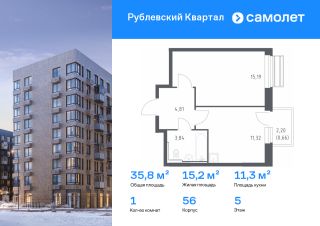 Строим кварталы для жизни с заботой о будущем. Предлагается 1-комнатная квартира комфорт-класса 35,82 кв.м в корпусе 56 на 5 этаже, в ЖК "Рублевский Квартал"