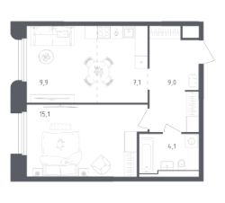 Строим кварталы для жизни с заботой о будущем. Предлагается 1-комнатная квартира бизнес-класса площадью 44,1 кв.м в корпусе 3.1 на 2-м этаже, в жилом комплексе "Заречье Парк".