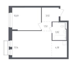 В продаже 1-комнатная квартира в корпусе 54 ЖК 'Рублевский Квартал'. Квартира располагается на 5 этаже, общая площадь 41.27 м2.