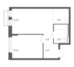 В продаже 1-комнатная квартира в корпусе 54 ЖК 'Рублевский Квартал'. Квартира располагается на 5 этаже, общая площадь 38.8 м2.