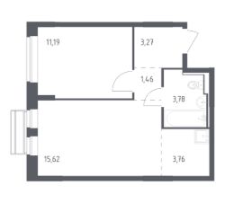 В продаже 1-комнатная квартира в корпусе 55 ЖК 'Рублевский Квартал'. Квартира располагается на 8 этаже, общая площадь 39.08 м2.