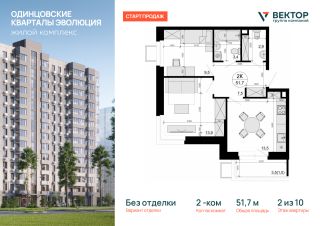 Продается 2-комн. кв-ра площадью 51,7 кв.м на 2 этаже 10 этажного дома в ЖК "Одинцовские кварталы Эволюция" от Группа компаний Вектор. Жилой комплекс "Одинцовские кварталы Эволюция" расположен в окружении живописного леса и исторических стародачных поселков, создавая атмосферу загородного уюта и культурной ценности. Этот район всегда считался престижным: здесь жили ученые, писатели и деятели искусства, что придает комплексу особый характер.