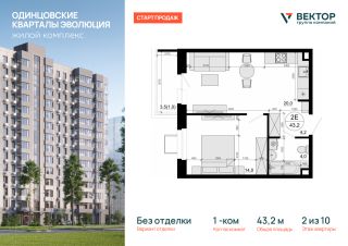 Продается 1-комн. кв-ра площадью 43,2 кв.м на 2 этаже 10 этажного дома в ЖК "Одинцовские кварталы Эволюция" от Группа компаний Вектор. Жилой комплекс "Одинцовские кварталы Эволюция" расположен в окружении живописного леса и исторических стародачных поселков, создавая атмосферу загородного уюта и культурной ценности. Этот район всегда считался престижным: здесь жили ученые, писатели и деятели искусства, что придает комплексу особый характер.