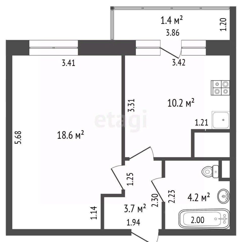Эта современная квартира расположена на 6 этаже 24-этажного монолитного дома 2018 года постройки. Общая площадь составляет 41,3 кв. м, из которых 18,6 кв. м приходится на жилую комнату. Просторная кухня площадью 10,2 кв. м станет идеальным местом для семейных ужинов, а балкон площадью 4,6 кв. м с панорамным остеклением и атермальной пленкой подарит вам комфорт в любое время года. Высота потолков 2,85 метра создает ощущение простора.